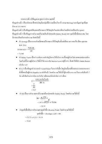 ค่า SS เปนการค านวณหาปรมาณสต๊อกปลอดภัย (Safety Stock) โดยค านวณได้ดังน้ ี
