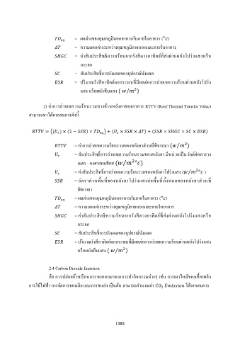 2) ค่าการถ่ายเทความรอนรวมทางด้านหลังคาของอาคาร RTTV (Roof Thermal Transfer Value)