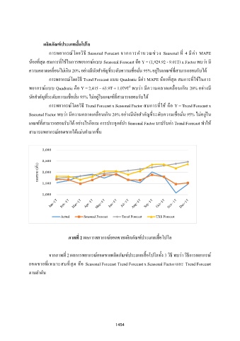น้อยทสด สมการทใช้ในการพยากรณแบบ Seasonal Forecast คอ Y = (1,929.92 - 9.01T) x Factor พบว่า ม ี