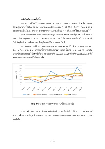 น้อยทสด สมการทใช้ในการพยากรณแบบ Seasonal Forecast คอ Y = (1,377.59 - 7.67T) x Factor พบว่า ม ี