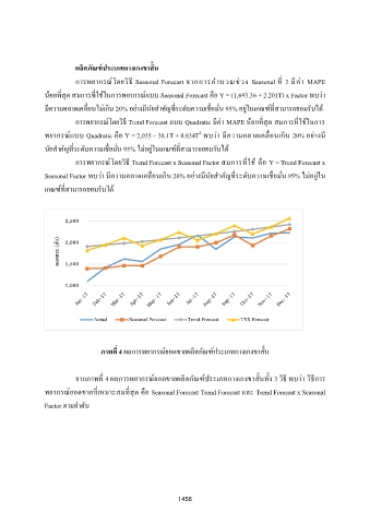 น้อยทสด สมการทใช้ในการพยากรณแบบ Seasonal Forecast คอ Y = (1,693.36 + 2.201T) x Factor พบว่า