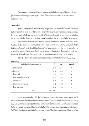 Song Karaoke Bar ผลการวิเคราะหข้อมลดังตารางท 1 พบว่า ในภาพรวมอยู่ในระดับมาก (ค่าเฉลย 3.913)