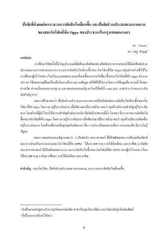 และกำรส่งเสรมกำรตลำดสมำรทโฟนยีห้อ OPPO ได้แก่ เพศ อำยุ รำยได้ต่อเดอน และอำชพ 2) ปจจัย