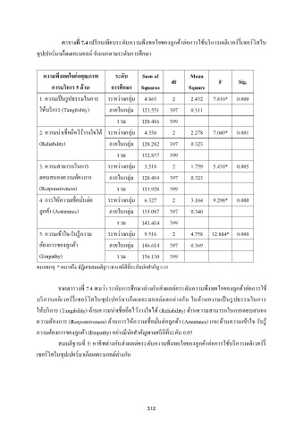 จากตารางท 7.4 พบว่า ระดับการศกษาต่างกันส่งผลต่อระดับความพึงพอใจของลกค้าต่อการใช้
