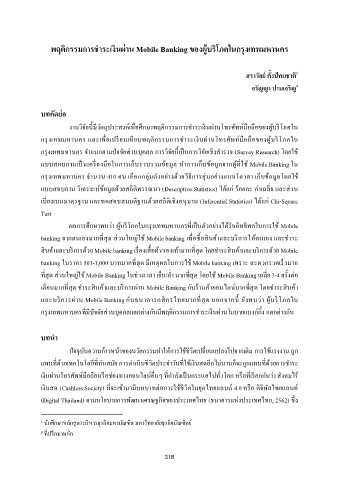 พฤติกรรมการชาระเงินผาน Mobile Banking ของผูบรโภคในกรุงเทพมหานคร