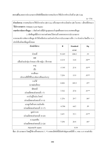ตัวแปรตาม: การยอมรบการใช้บรการผ่าน QR Code (ปรมาณการช าระเงนผ่าน QR ในรอบ 1 เดอนทผ่านมา)