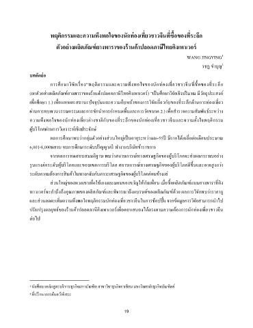 ควำมพึงพอใจของนักท่องเทยวต่ำงชำตกับของทระลกของนักท่องเทยวชำวจนและควำมตั้งใจพฤตกรรม