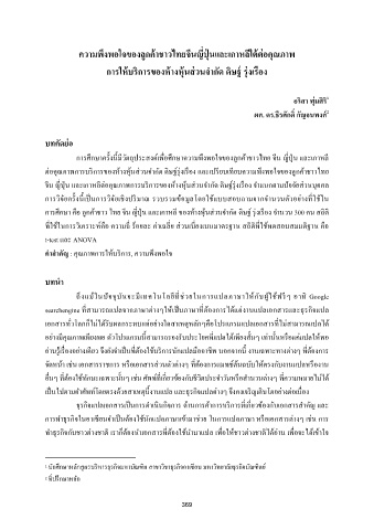 ความพึงพอใจของลูกคาชาวไทยจีนญีปุ ่ นและเกาหลีใตตอคุณภาพ