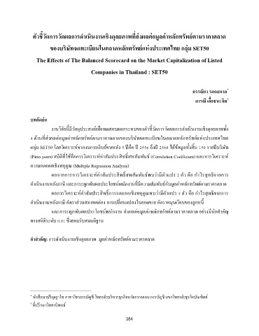 ตัวชวัดการวัดผลการด าเนนงานเชงดุลยภาพทีสงผลตอมูลคาหลักทรพยตามราคาตลาด