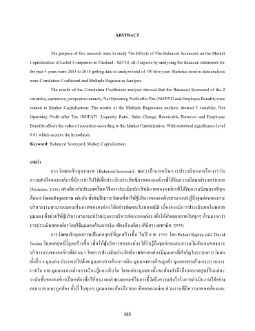 The purpose of this research were to study The Effects of The Balanced Scorecard on the Market