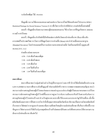 (Standard Deviation) โดยก ำหนดเกณฑ์ในกำรแปลควำมหมำยของค่ำเฉลย โดยถอเกณฑ์ดังน้ (บญชม ศร ี