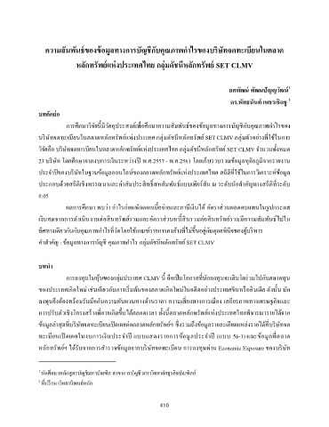 ค าส าคัญ : ข้อมลทางการบัญช คณภาพก าไร กล่มดัชนหลักทรพย์ SET CLMV