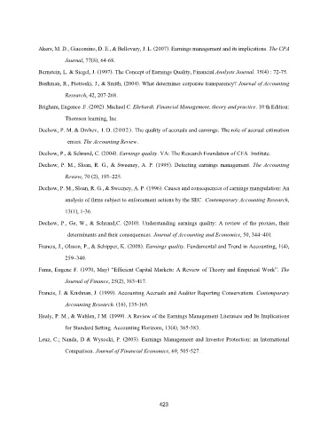 Dechow, P., Ge, W., & Schrand,C. (2010). Understanding earnings quality: A review of the proxies, their