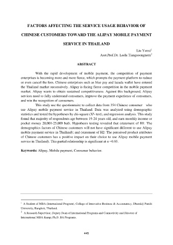 use Alipay mobile payment service in Thailand. Data was analyzed using demographic