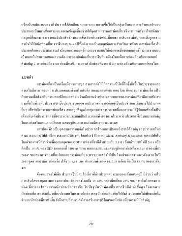 การท่องเทยวเปนอตสาหกรรมหลักในประเทศไทยและเปนแหล่งรายได้ส าคัญของประเทศไทย