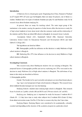 decision to study Maklorm (Go) of high school students in Bangkok. The definitions of key