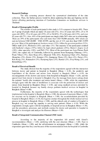 nurses from hospital in Bangkok (Mean = 4.30), and using medical services provided by