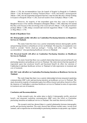 (Mean = 3.70), the recommendation from the branch of hospital in Bangkok in Cambodia