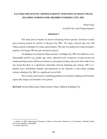 Keyword: Factors Influencing, Chinese parents, Piano, Children in Beijing City.