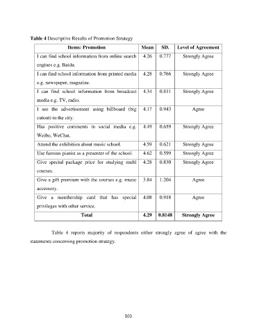 Use famous pianist as a presenter of the school. 4.62 0.599 Strongly Agree