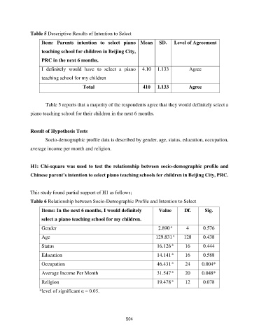 Table 6 Relationship between Socio-Demographic Profile and Intention to Select