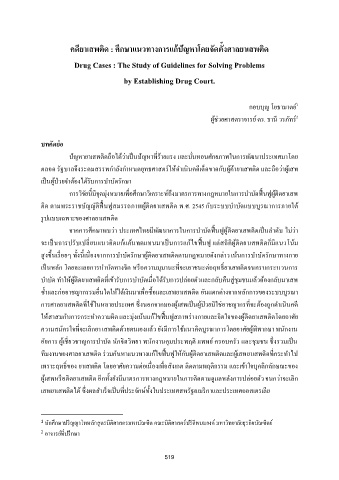 คดียาเสพติด : ศกษาแนวทางการแกปญหาโดยจัดตังศาลยาเสพติด