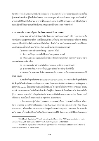 การให้บรการดแลสขภาพทางไกล โดยผู้เชยวชาญทั้งหมดใช้เทคโนโลยีสารสนเทศและการสอสาร ส าหรบ