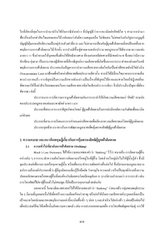 Black’s Law Dictionary ได้ให้ความหมายของค าว่า “Stalking” ไว้ว่า หมายถง การตดตามผู้อน