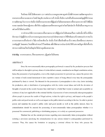 ค าสาคัญ : การครอบครอง, สอลามกอนาจาร, ผู้ถกถ่ายไม่ยินยอม