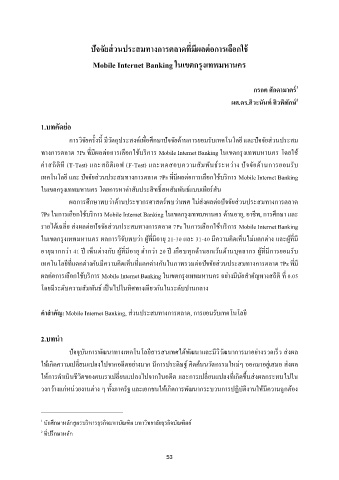 เทคโนโลยี และ ปจจัยส่วนประสมทางการตลาด 7Ps ทมผลต่อการเลอกใช้บรการ Mobile Internet Banking