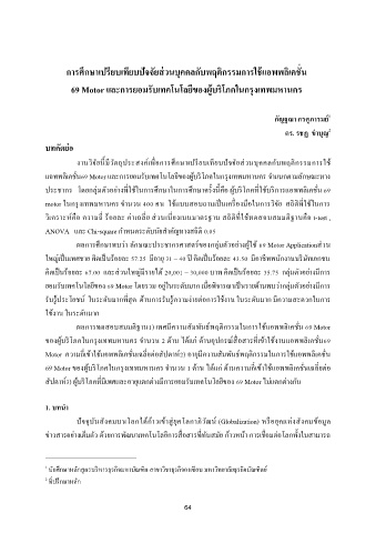 69 Motor และการยอมรบเทคโนโลยีของผูบรโภคในกรุงเทพมหานคร