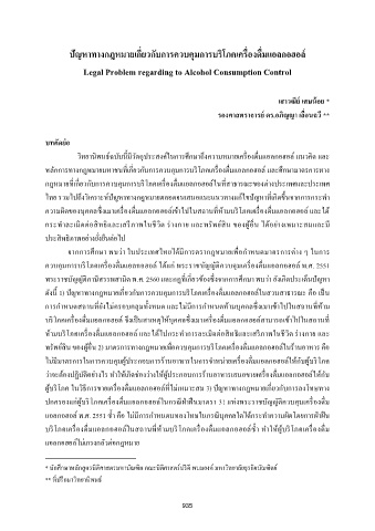 ดังน้ 1) ปญหาทางกฎหมายเกียวกับการควบคมการบรโภคเครองดมแอลกอฮอล์ในสวนสาธารณะ คอ เปน