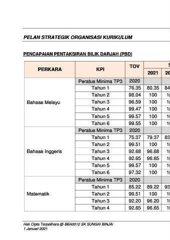 PENCAPAIAN PENTAKSIRAN BILIK DARJAH (PBD)
