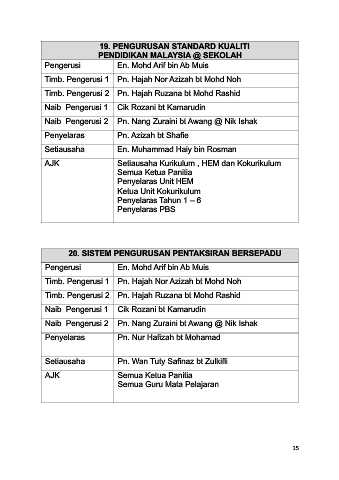 AJK Setiausaha Kurikulum , HEM dan Kokurikulum