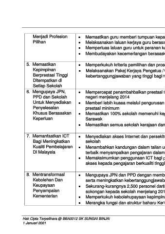 8. Mentransformasi • Mengupaya JPN dan PPD dengan memberi lebih hak membuat keputusan tentang bajet dan personel mulai 2013,