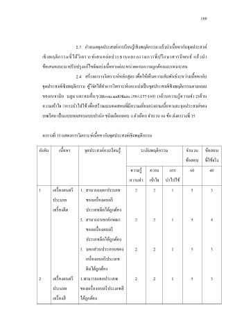 ตารางท 15 แสดงการวิเคราะหเน้อหากับจดประสงค์เชงพฤตกรรม