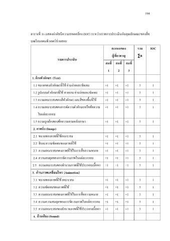 ตารางท 16 แสดงค่าดัชนความสอดคล้อง (IOC) ระหว่างรายการประเมนกับคณลักษณะของสอ