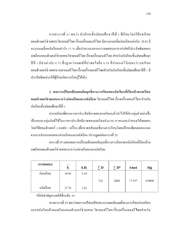 จากการท าแบบทดสอบก่อนเรยนและหลังเรยน ปรากฏผลดังตารางท 25