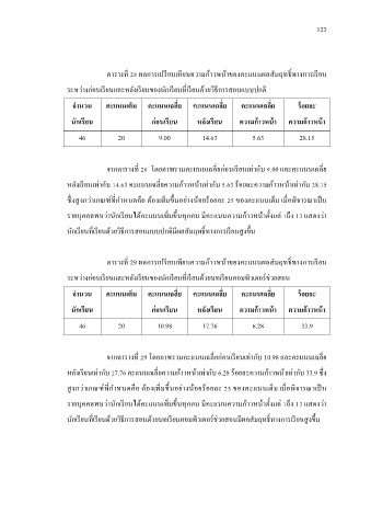 ตารางท 29 ผลการเปรยบเทยบความก้าวหน้าของคะแนนผลสัมฤทธ์ ิทางการเรยน