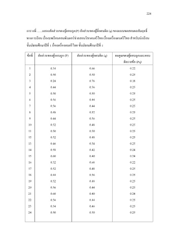 ตารางท .......แสดงสัดส่วนของผู้ตอบถก(P) สัดส่วนของผู้ทตอบผิด (q) ของแบบทดสอบผลสัมฤทธ์ ิ