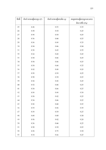 ข้อท สัดส่วนของผู้ตอบถก (P) สัดส่วนของผู้ตอบผิด (q) ผลคณของผู้ตอบถกและตอบ