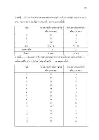 ตารางท ...... แสดงผลการหาประสทธภาพของบทเรยนคอมพิวเตอรช่วยสอนวิชาดนตรไทยเรองเครอง