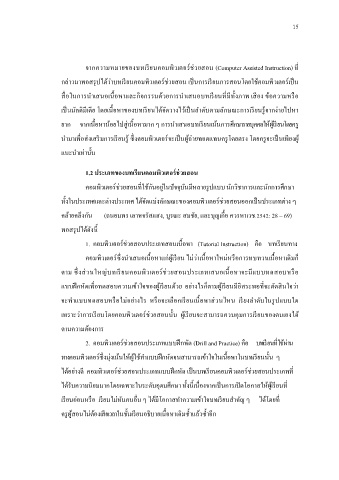 น ามาเพือส่งเสรมการเรยนร ซงคอมพิวเตอรจะเปนผู้ถ่ายทอดแทนครโดยตรง โดยครจะเปนเพียงผู้