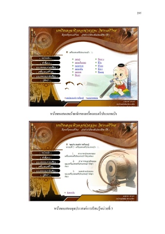 285 ่ ี ื่ หน้าจอแสดงหน้าหลักของเครองดนตรประเภทเปา ่ ี ุ หน้าจอแสดงจดประสงค์การเรยนรหน่วยท 3 ี ้ ู