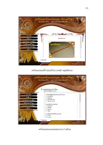 286 ี ่ ุ หน้าจอแสดงเครองดนตรประเภทเปา ขล่ยเพียงออ ่ ื หน้าจอแสดงแบบทดสอบระหว่างเรยน ี