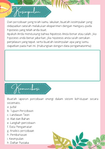 Dari percobaan yang telah kamu lakukan, buatlah kesimpulan yang
