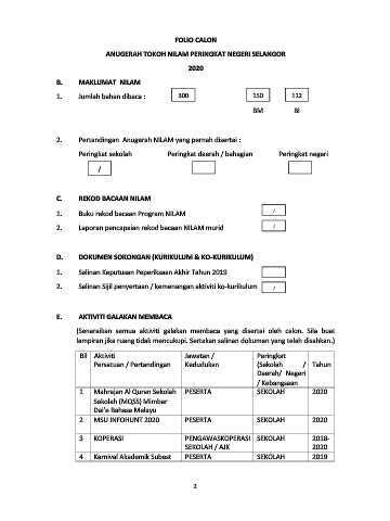 2. Salinan Sijil penyertaan / kemenangan aktiviti ko-kurikulum /