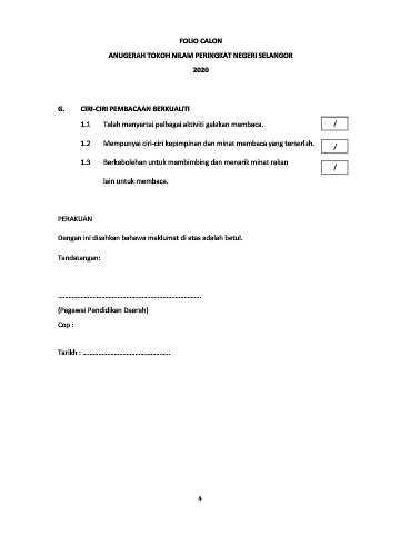 1.2 Mempunyai ciri-ciri kepimpinan dan minat membaca yang terserlah.