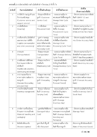ตารางที� 2 การวัดประสิทธิภาพดานโลจิสติกส 9 กิจกรรม 27 ตัวชี�ว ัด