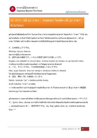 พูดไทยชัดจง เรากเข ้าใจได ้ว่าพูดถึงภาษาไทย ไม่ใช่ประเทศไทย แต่ในภาษาญี่ปุนละคําว่า ~語 go